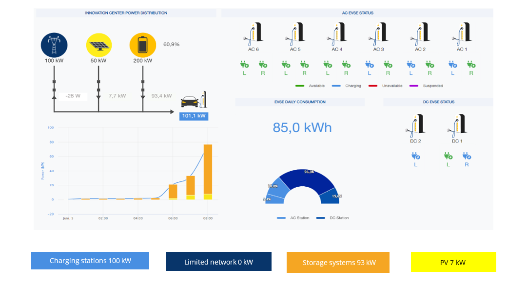 Als gevolg hiervan functioneert het Innovation Center nu als een prosumentengebouw: het maakt gebruik van energieopslag om de laadbehoeften van elektrische voertuigen los te koppelen van de beperkingen van het net en om het gebruik van lokale hernieuwbare energiebronnen te optimaliseren.