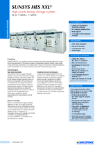 SUNSYS HES XXL is een compleet, gebruiksklaar energie-opslagsysteem met hoog vermogen voor toepassingen op en buiten het elektriciteitsnet. Dit systeem is gebaseerd op gestandaardiseerde kasten en biedt een grote verscheidenheid aan veilige en eenvoudige configuraties. Het is bij uitstek geschikt voor grote commerciële en industriële installaties en voor alleenstaande of co-locatieprojecten, voornamelijk met hernieuwbare energiebronnen.
