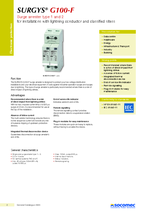 De SURGYS G100-F overspanningsbeveiliging is ontworpen om uw laagspanningsdistributie-installaties en uw elektrische uitrusting te beveiligen. Het werkt tegen pieken door industriële activiteiten en door bliksem. Dit type overspanningsbeveiliging wordt in het bijzonder aanbevolen als er een risico is op directe impact van blikseminslagen.