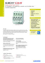 SURGYS G50-FE overspanningsbeveiligingen zijn ontworpen om uw laagspanningsdistributiesystemen en elektrische uitrusting te beveiligen. Het werkt tegen pieken van industriële activiteiten en wegens bliksem. Dit type overspanningsbeveiliging is bijzonder aanbevolen als er een risico is op directe impact van blikseminslagen, op het niveau van het hoofdschakelbord met elektronica gevoelig voor overspanningen.