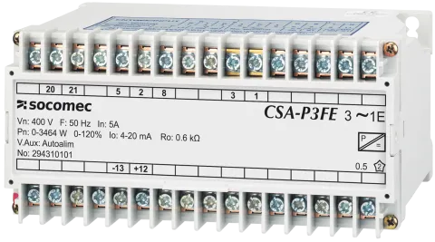 | Beschrijving | Transducer CSA-A4 ingang : 400V, 5A uitgang : 4-20 mA, 0-10 VDC, 230 VAC hulpvoeding, 50 Hz Transducer zet een elektrische parameter om in een DC-signaal |