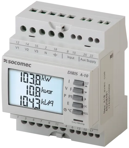 | Beschrijving | DIRIS A-10 without RS485 Modbus communication It allows all electrical parameters to be displayed and utilised for communication and/or output functions |